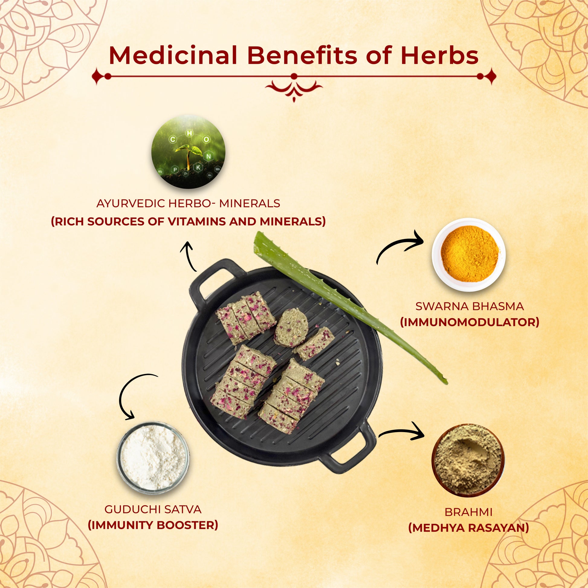 Swarna Bhasma, Brahmi Swaras, Guduchi Satva, Praval bhasma, Abhrak Bhasma, Granthik, and Herbo-Minerals Combination