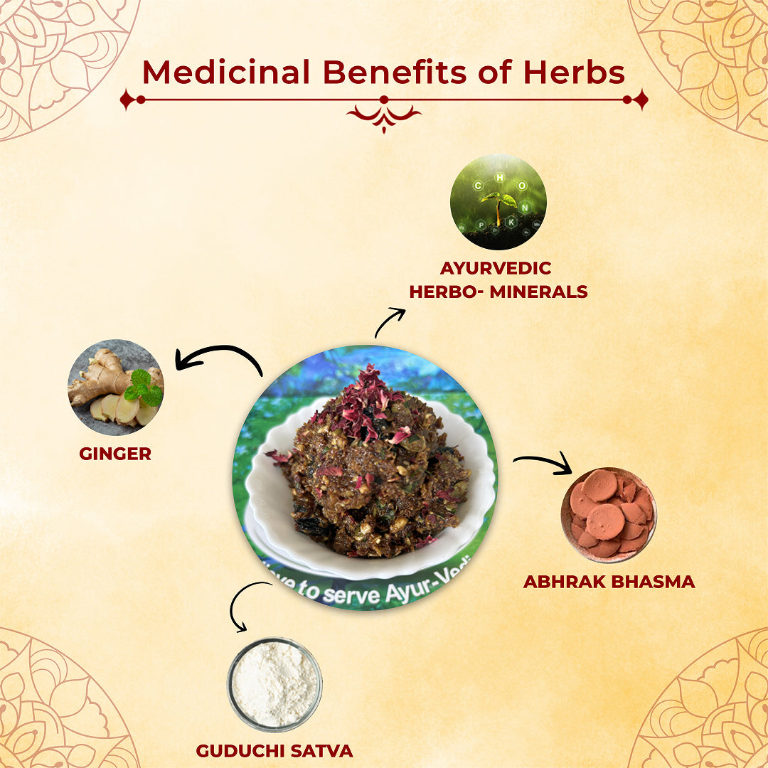 Organic Lakdong Turmeric Powder (10% Curcumin content from Meghalaya) Gum, Pippali Root, Pippali, Black Pepper, Loh Bhasma, Honey, Dry Ginger, Praval Pishti, Shankh Bhasma, Guduchi Sattva, Herbo-Minerals Herbs.