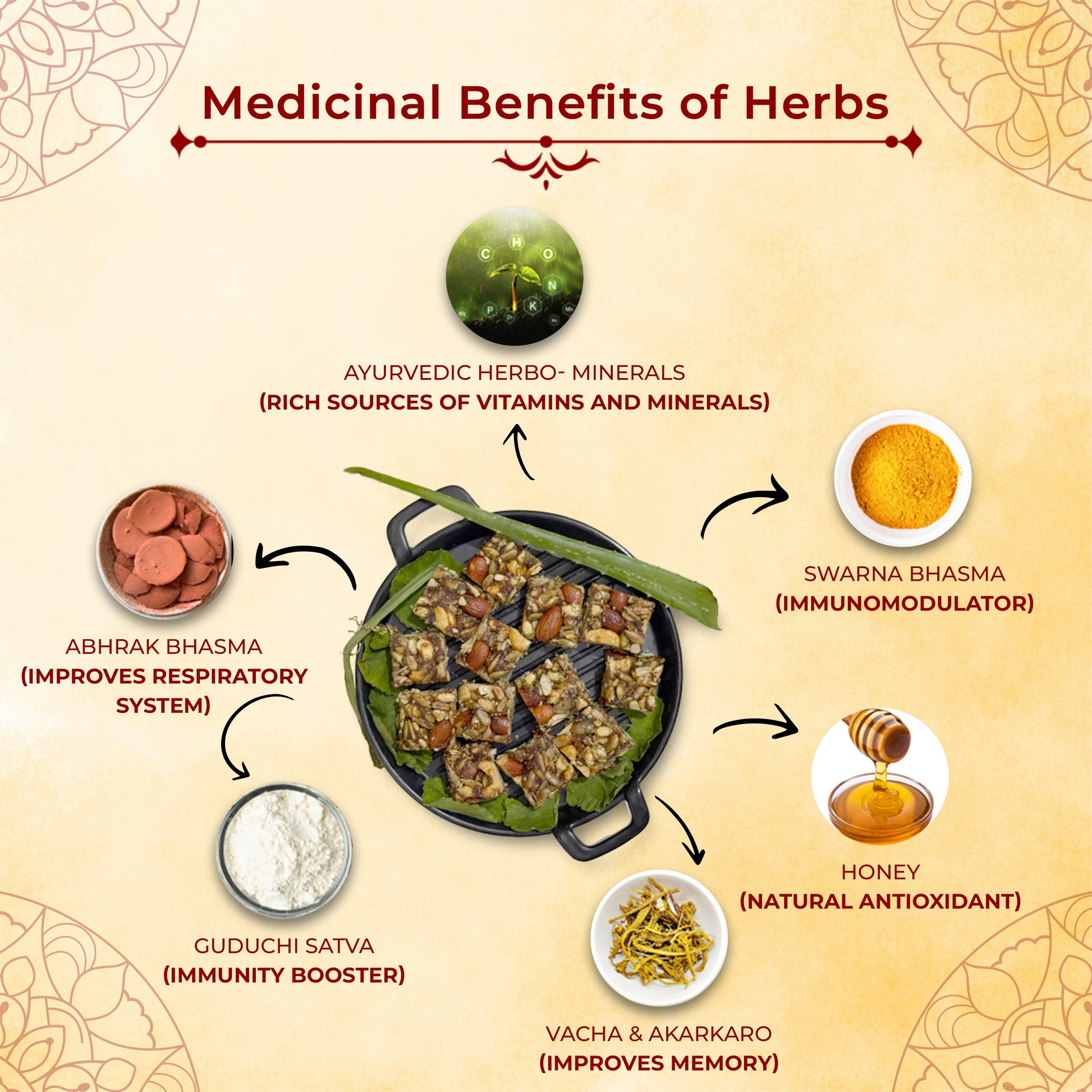 Swarna Bhasma, Guduchi Satva, Abhrak Bhasma, Vacha & Akarkaro, Dry Ginger powder, Cardamom powder, Granthik, Herbo - Minerals Combination